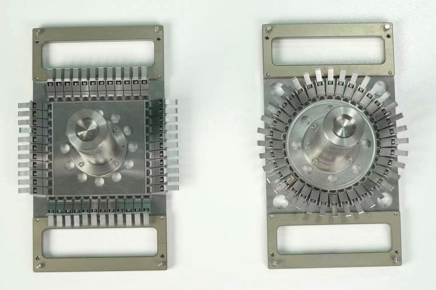 8月,凤凰光腾发布了研磨夹具新品(左),针对光模块器件,正在原36头研磨盘根本上开辟出了46头研磨夹具,效率由本来的5500/10H添加至7000/10H。此外,曲排式圆周的陈列体例,让产物拆夹更快速,整个研磨洁净更清洁,良率取效率均获得稳步提拔,并已取得大客户的批量采购。